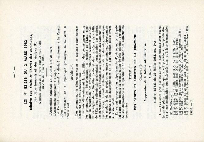 Il y a 30 ans, était promulguée une loi historique pour la vie publique, étape essentielle de la décentralisation des pouvoirs vers les collectivités : la « loi relative aux droits et libertés des communes, des départements et des régions » (loi du 2 mars 1982, également qualifiée avec d’autres de « loi Defferre », du nom du Ministre de l’Intérieur de l’époque). Comment ce changement majeur a-t-il été présenté par les acteurs de l’époque ? Petit aperçu à travers quelques documents d’archives régionales…